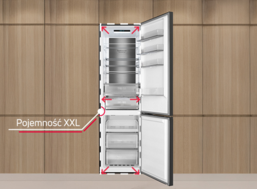 Wybierając lodówkę o standardowej szerokości 60 cm, zyskujesz pojemność w rozmiarze XXL! To aż 405 litrów powierzchni do przechowywania żywności.