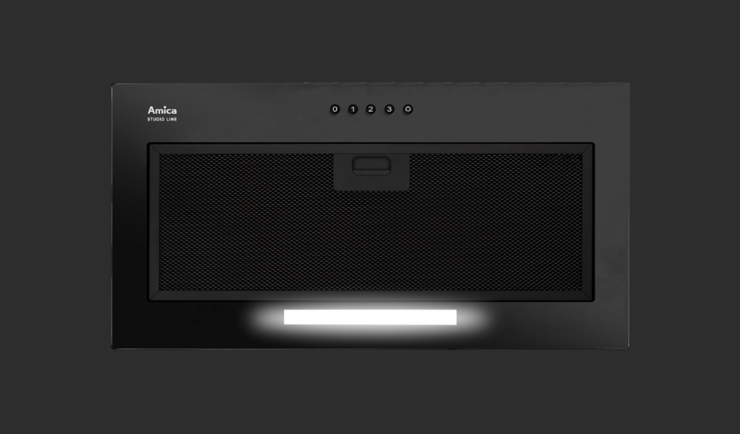 Zmniejszona głębokość konstrukcji okapu pozwala na bezproblemową instalację w standardowej, 30. centymetrowej szafce.